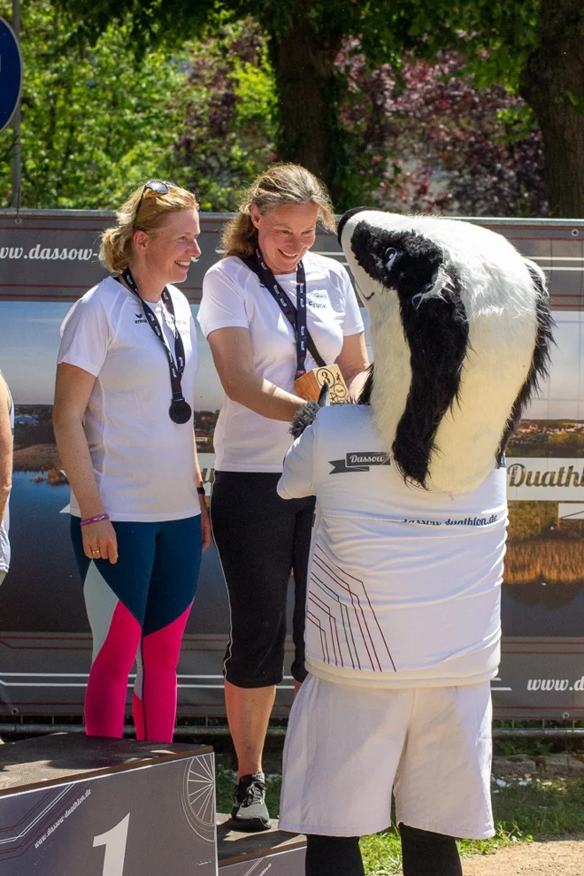 Der Dassower Duathlon umfasst einen Wettkampf mit zwei verschiedenen Sportarten: 23km Cross-Fahrrad fahren kombiniert mit 7km Laufen. Als wir das gehört haben, wussten wir, dass unsere Mitarbeiter und Mitarbeiterinnen definitiv teilnehmen werden. So bildeten sich schnell zwei Teams, die mit viel Motivation und Spaß in den Wettkampf starteten.